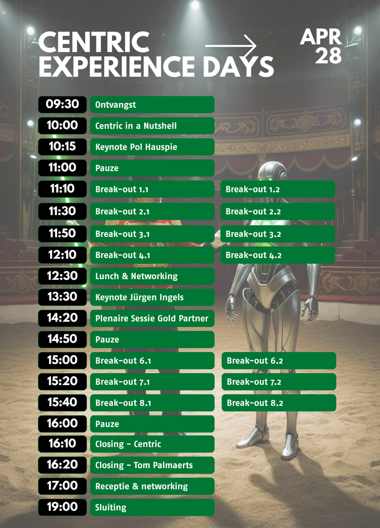 Tijdens de Centric Experience Day brengen we ondernemers, IT-professionals en bedrijfsleiders samen rond één centraal thema: hoe technologie bedrijven écht vooruithelpt.